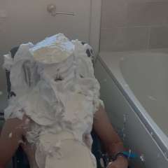 GARYWAM had a sloppy pie dumped all over his head by bsmessybakery